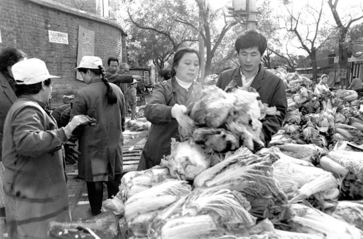 1988年11月,北京门客把大白菜当作涮羊肉暖锅的配菜。