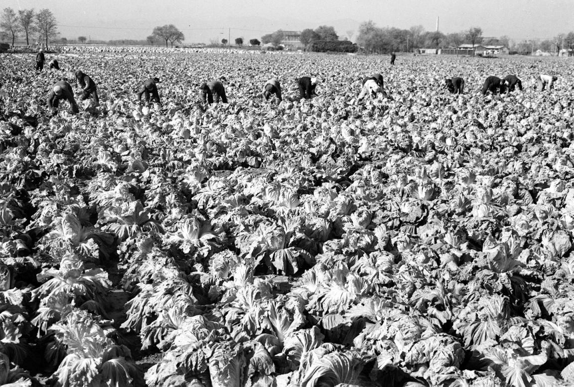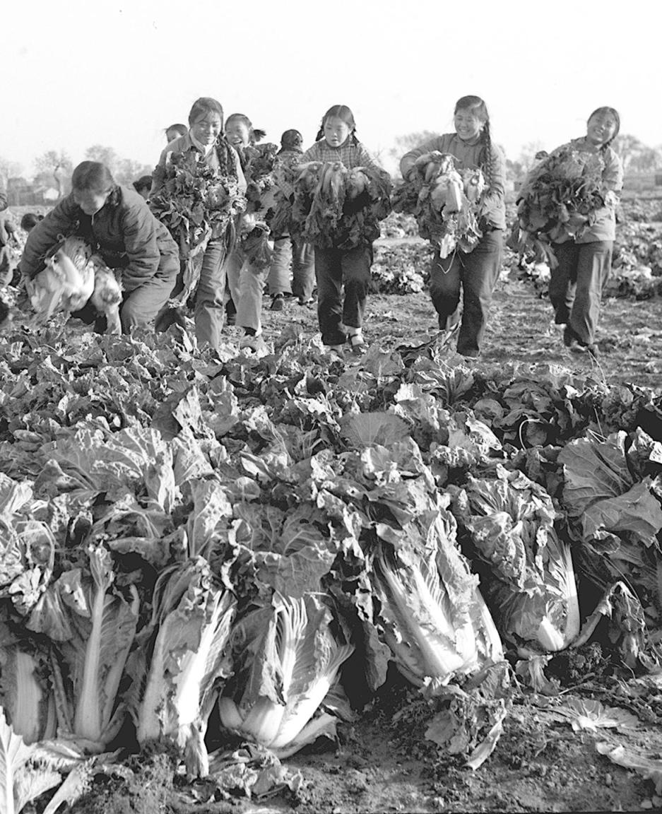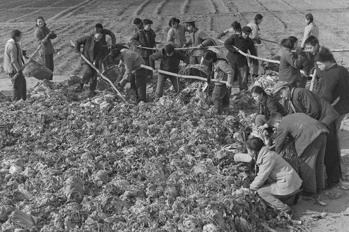 1959年,北京卢沟桥东说念主民公社社员在菜地里抢收大白菜。