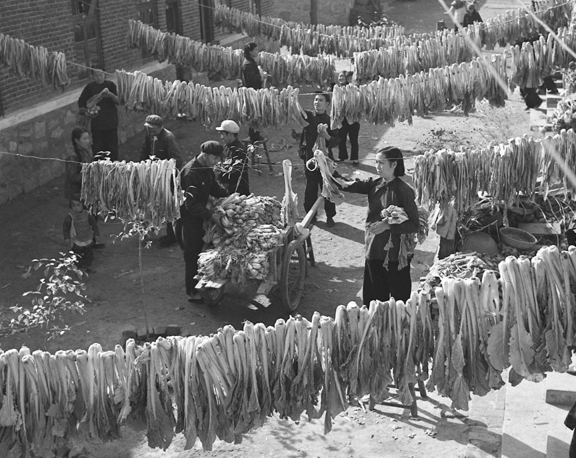 1959年10月,山西大同矿区同家梁商店员工家属们腌菜、晒菜,准备过冬。