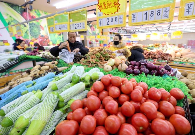 2023年12月9日,消耗者在山东枣庄一家超市选购蔬菜。